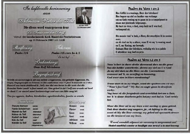 Funeral Programs / Begrafnisbriewe