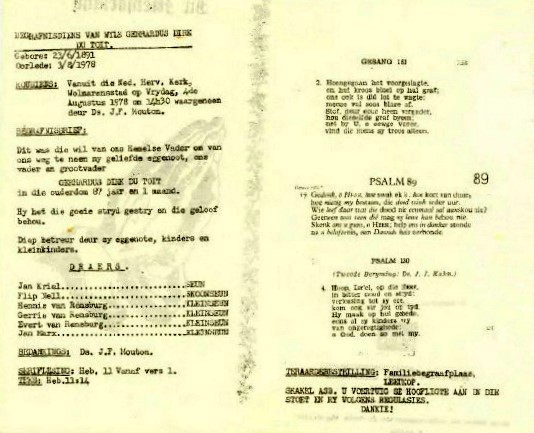 Funeral Programs / Begrafnisbriewe