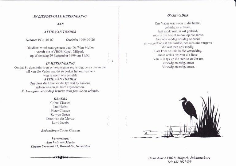 Funeral Programs / Begrafnisbriewe
