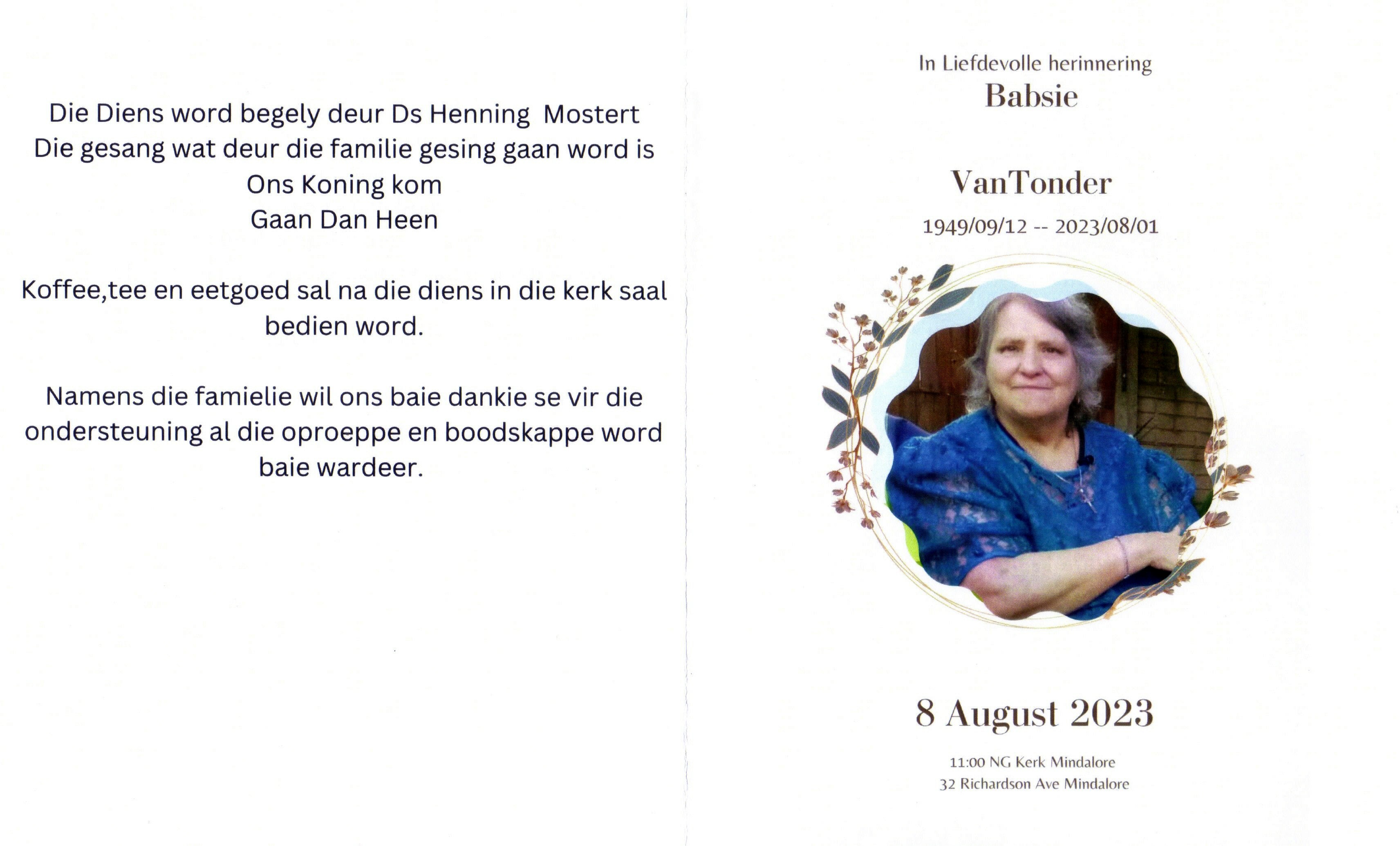 TONDER-VAN-Babsie-1949-2023-F