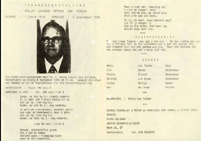 Funeral Programs / Begrafnisbriewe