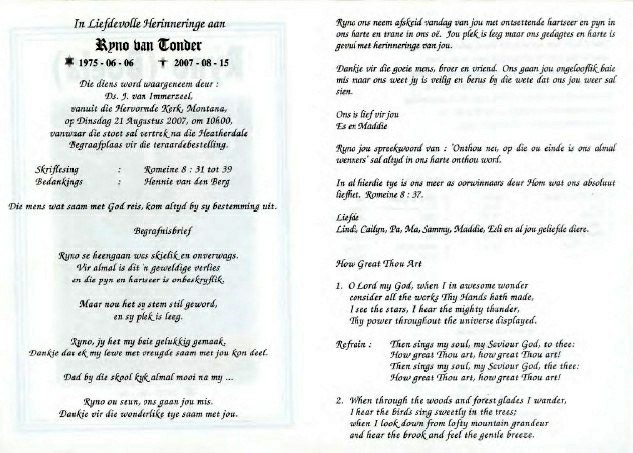 Funeral Programs / Begrafnisbriewe