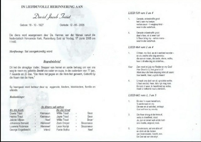 Funeral Programs / Begrafnisbriewe