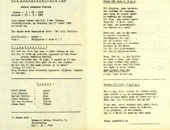 Funeral Programs / Begrafnisbriewe