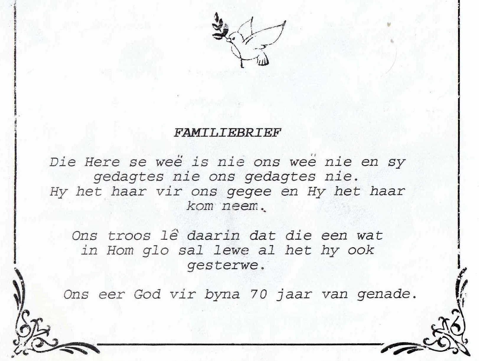 Funeral Programs / Begrafnisbriewe