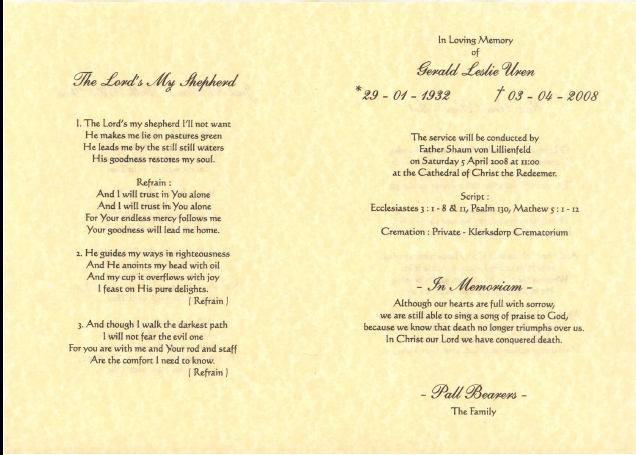 Funeral Programs / Begrafnisbriewe