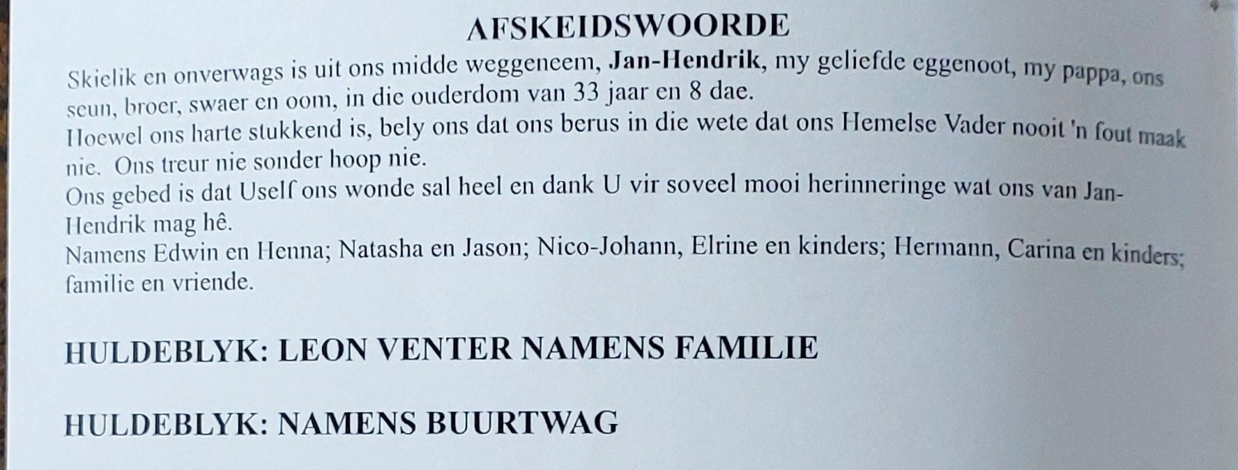 Funeral Programs / Begrafnisbriewe