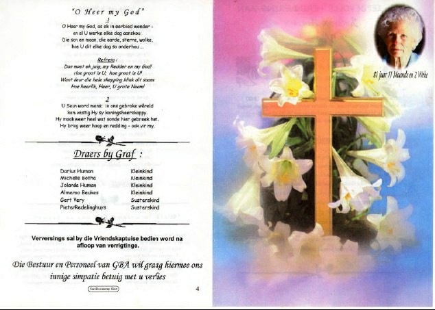 Funeral Programs / Begrafnisbriewe