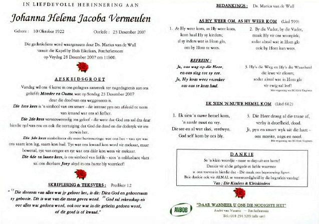 Funeral Programs / Begrafnisbriewe