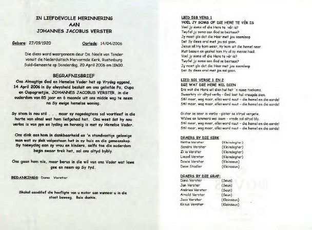 Funeral Programs / Begrafnisbriewe