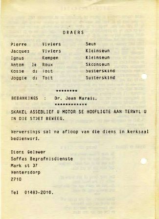 Funeral Programs / Begrafnisbriewe