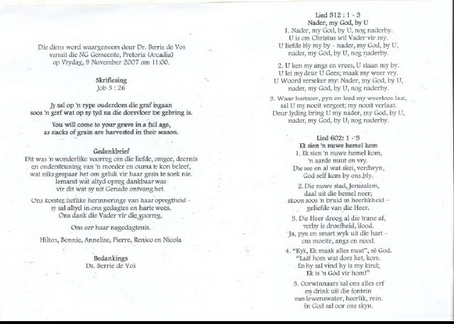 Funeral Programs / Begrafnisbriewe