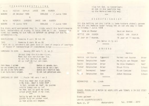 Funeral Programs / Begrafnisbriewe