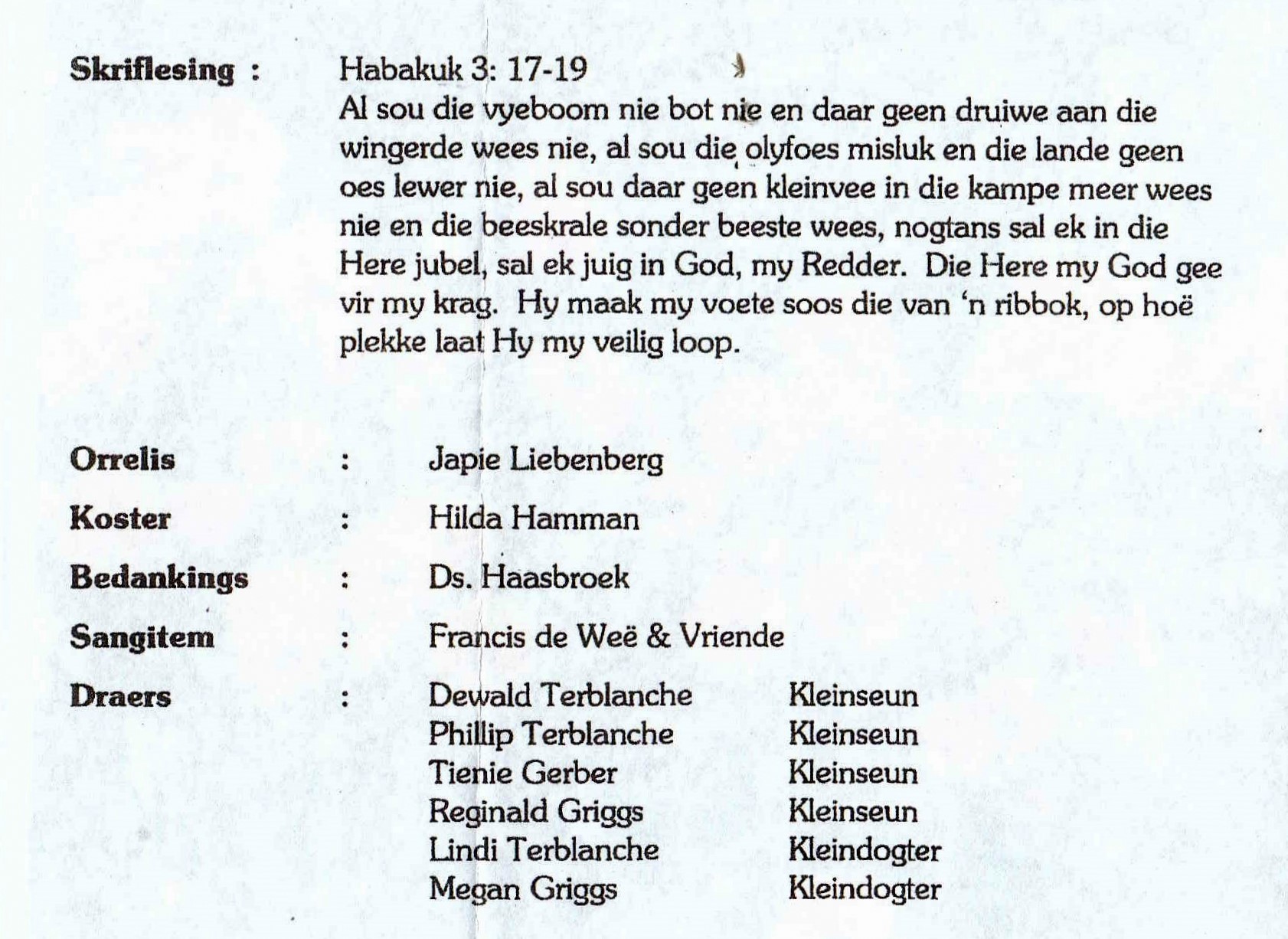 Funeral Programs / Begrafnisbriewe