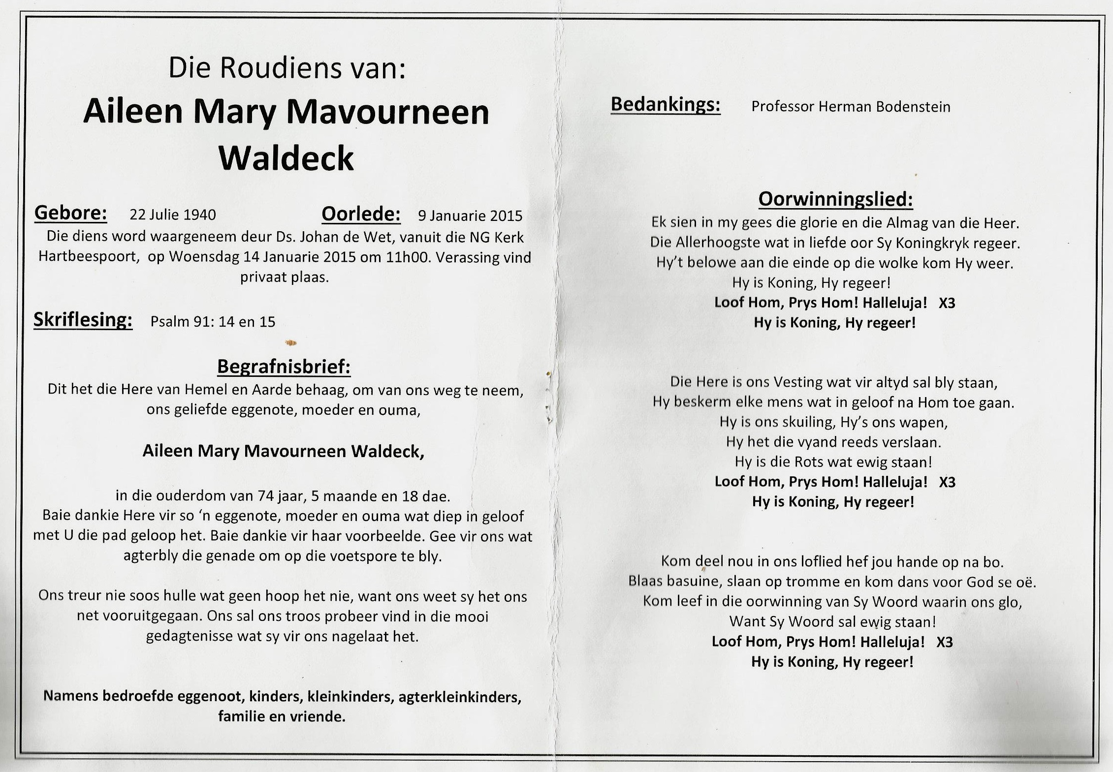 Funeral Programs / Begrafnisbriewe