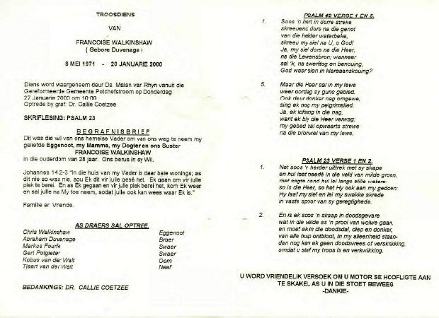 WALKINSHAW-Francoise-nee-Duvenhage-1971-2000-GGSA.NoordWesVersameling-F