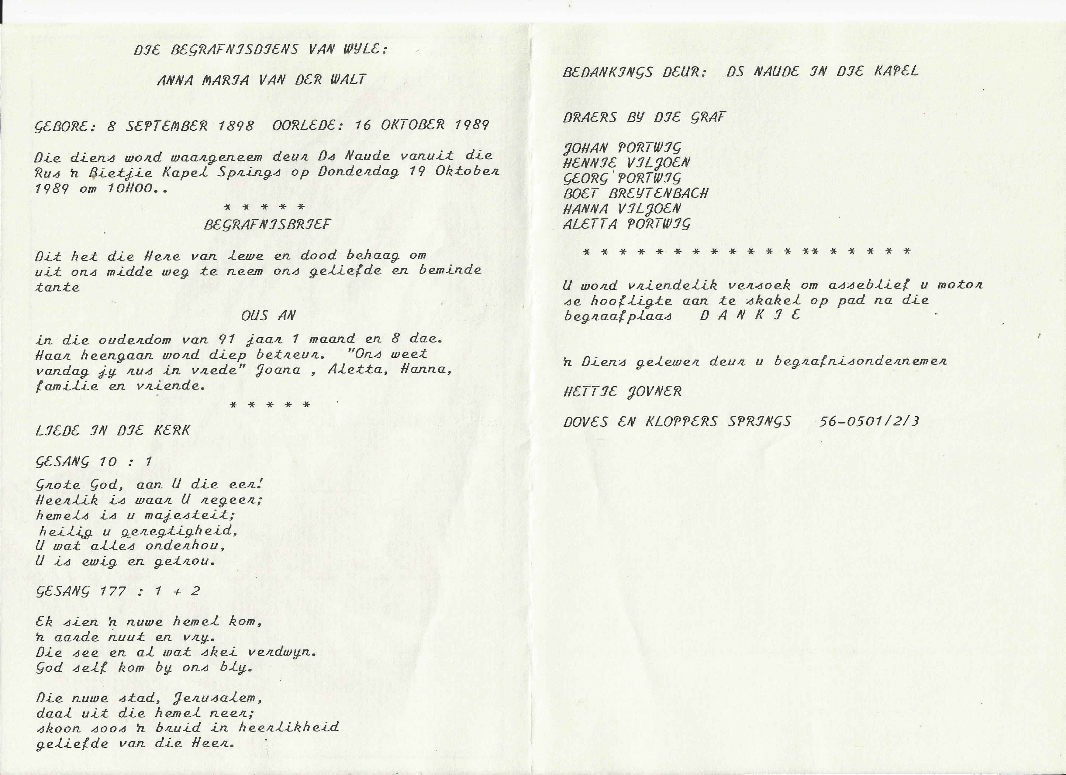 Funeral Programs / Begrafnisbriewe