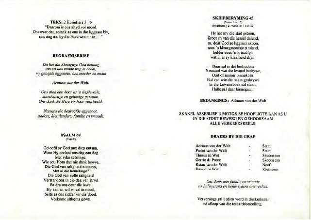 Funeral Programs / Begrafnisbriewe