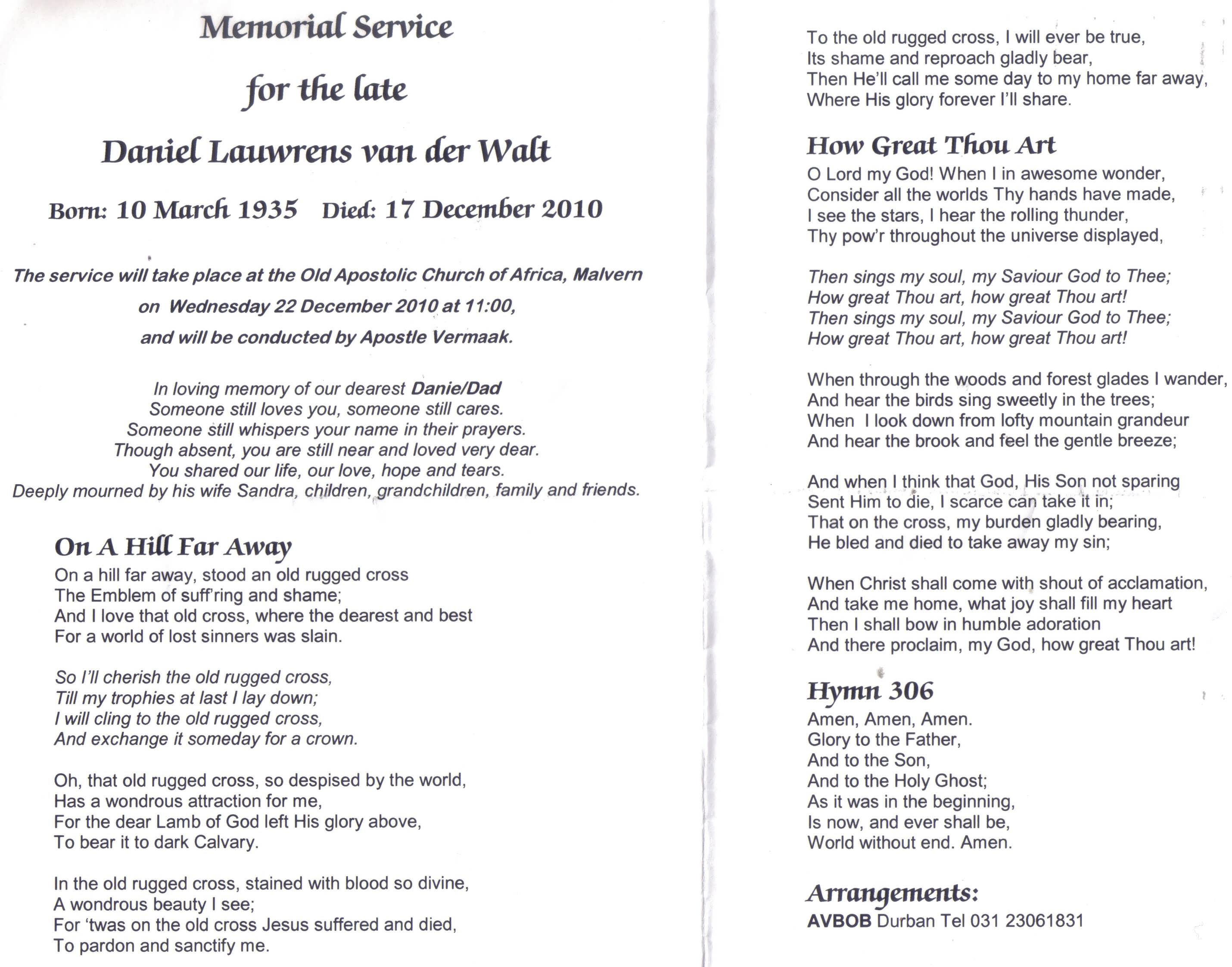 Funeral Programs / Begrafnisbriewe