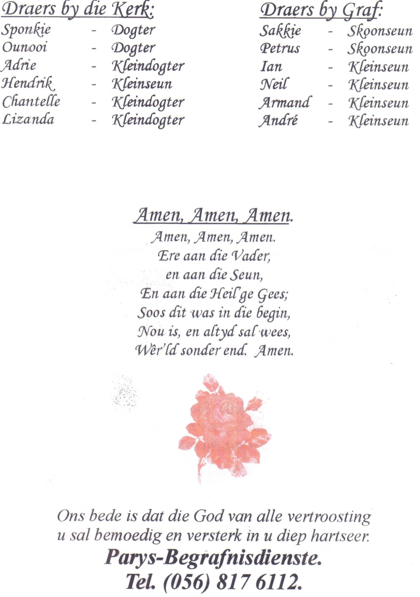 Funeral Programs / Begrafnisbriewe