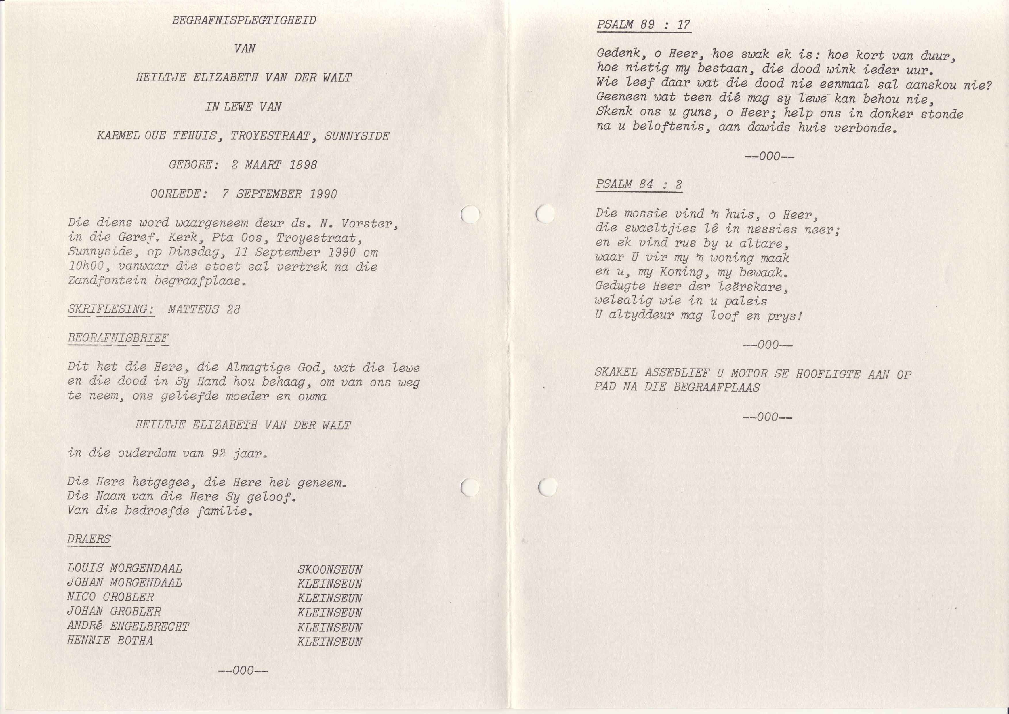 Funeral Programs / Begrafnisbriewe