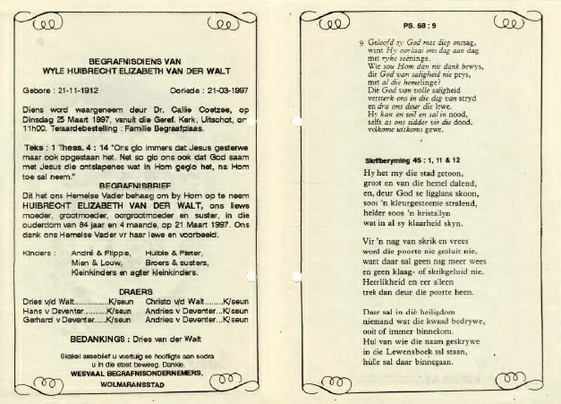 Funeral Programs / Begrafnisbriewe