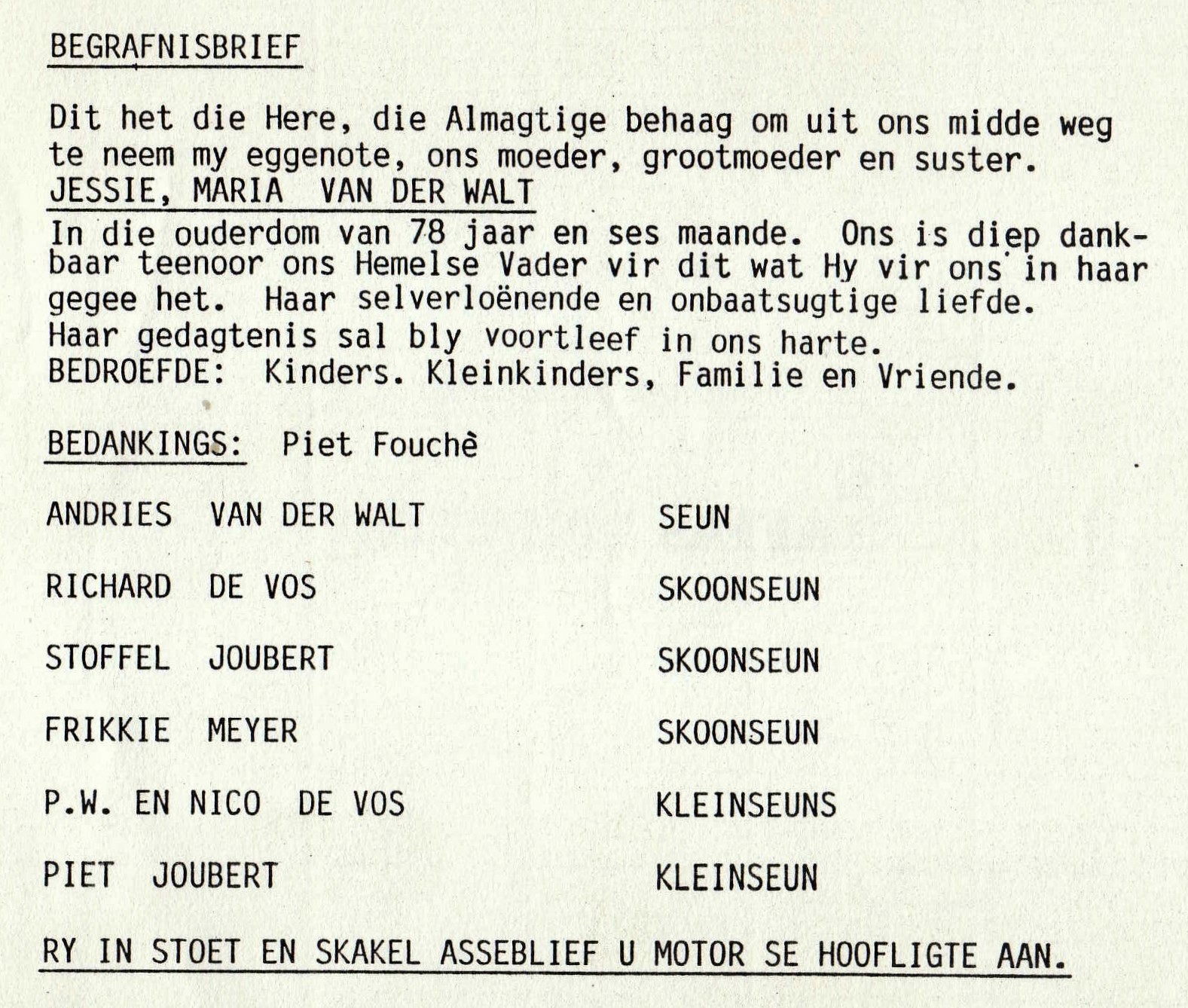 Funeral Programs / Begrafnisbriewe