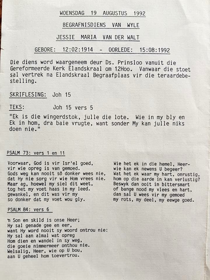 Funeral Programs / Begrafnisbriewe
