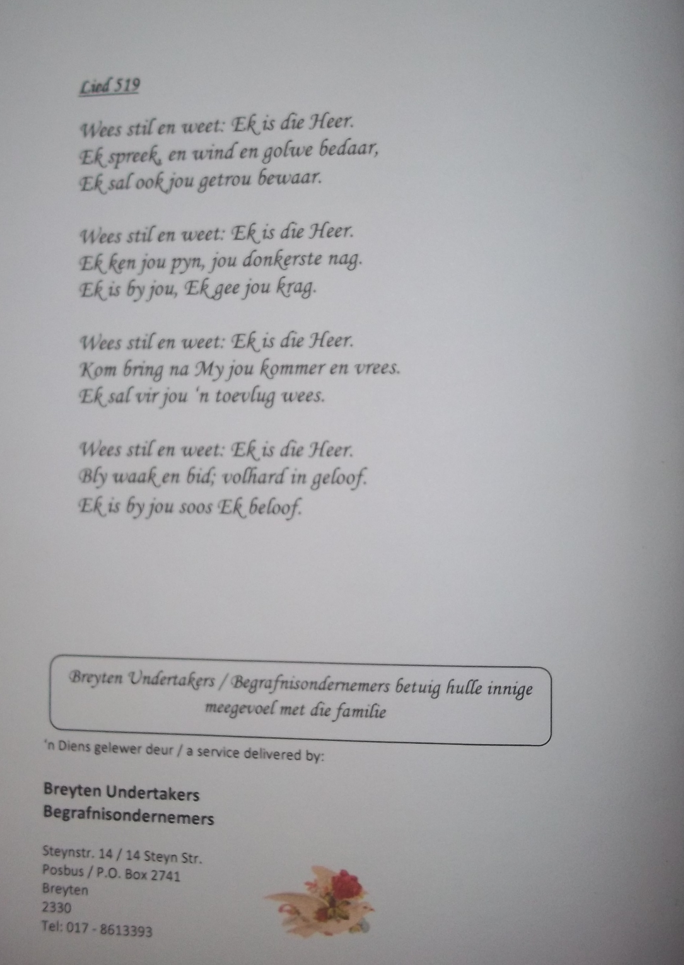 Funeral Programs / Begrafnisbriewe