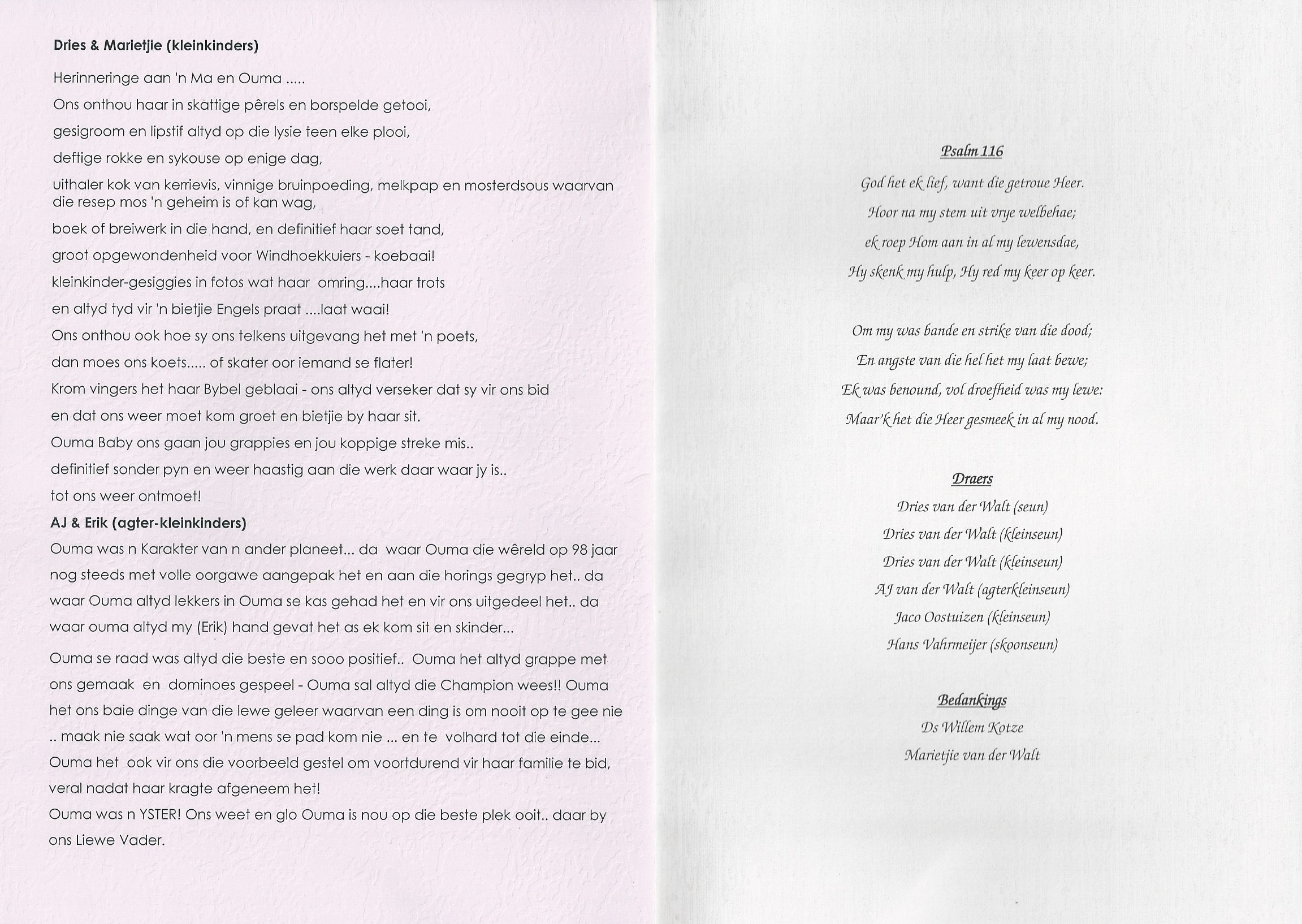 Funeral Programs / Begrafnisbriewe