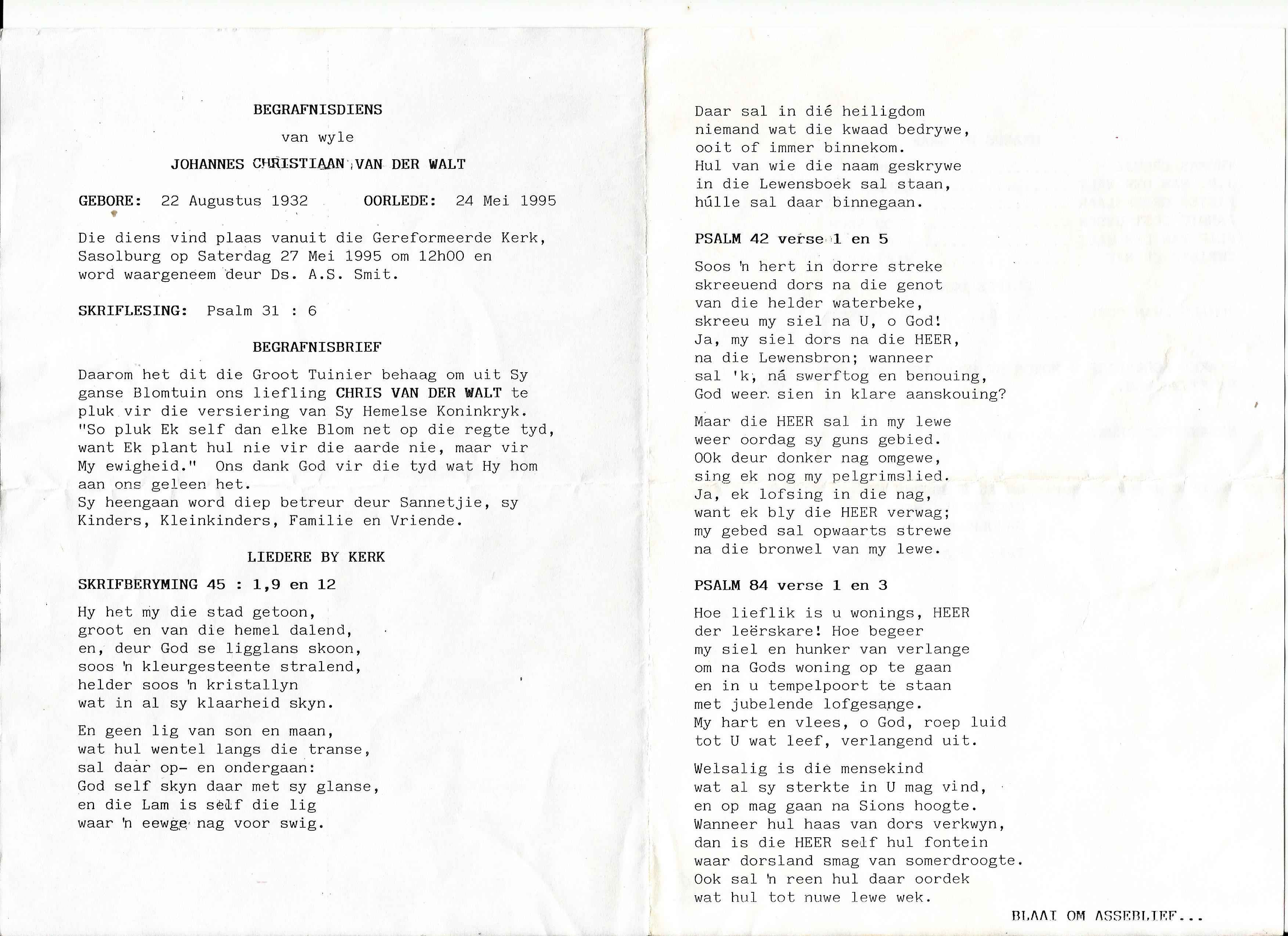 Funeral Programs / Begrafnisbriewe