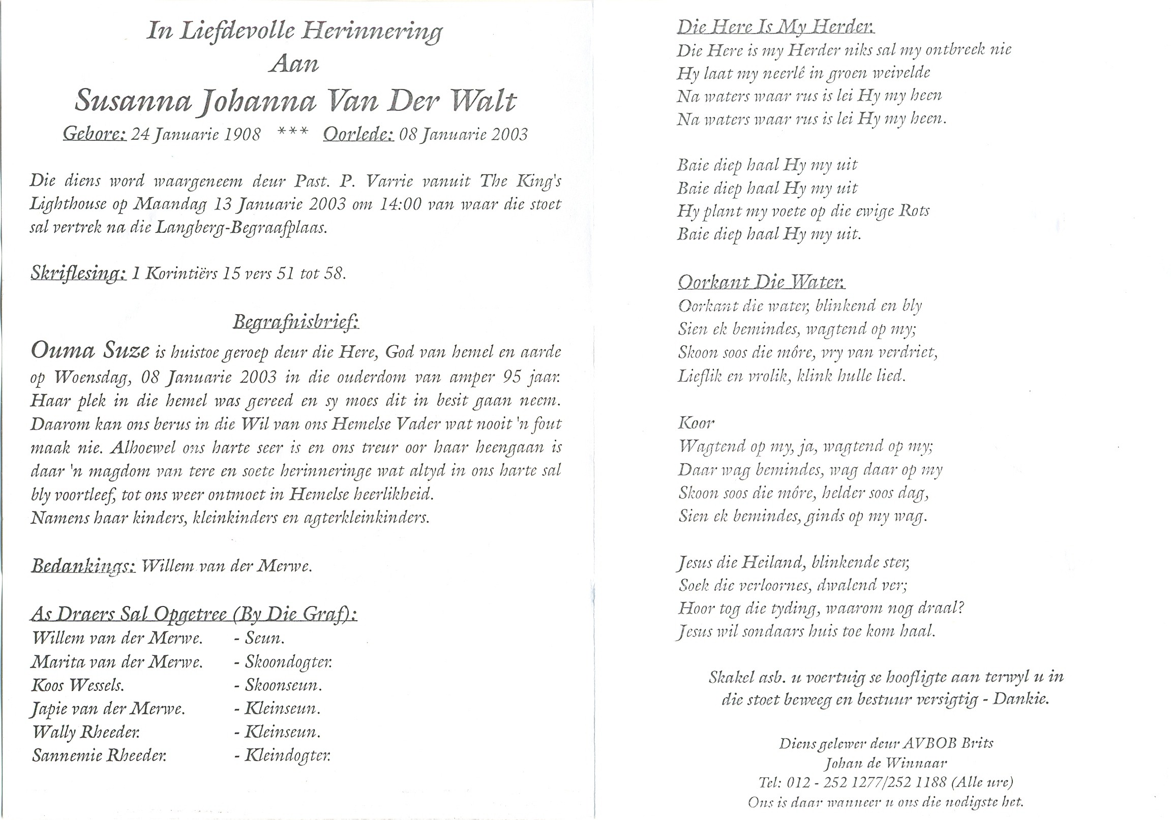 Funeral Programs / Begrafnisbriewe