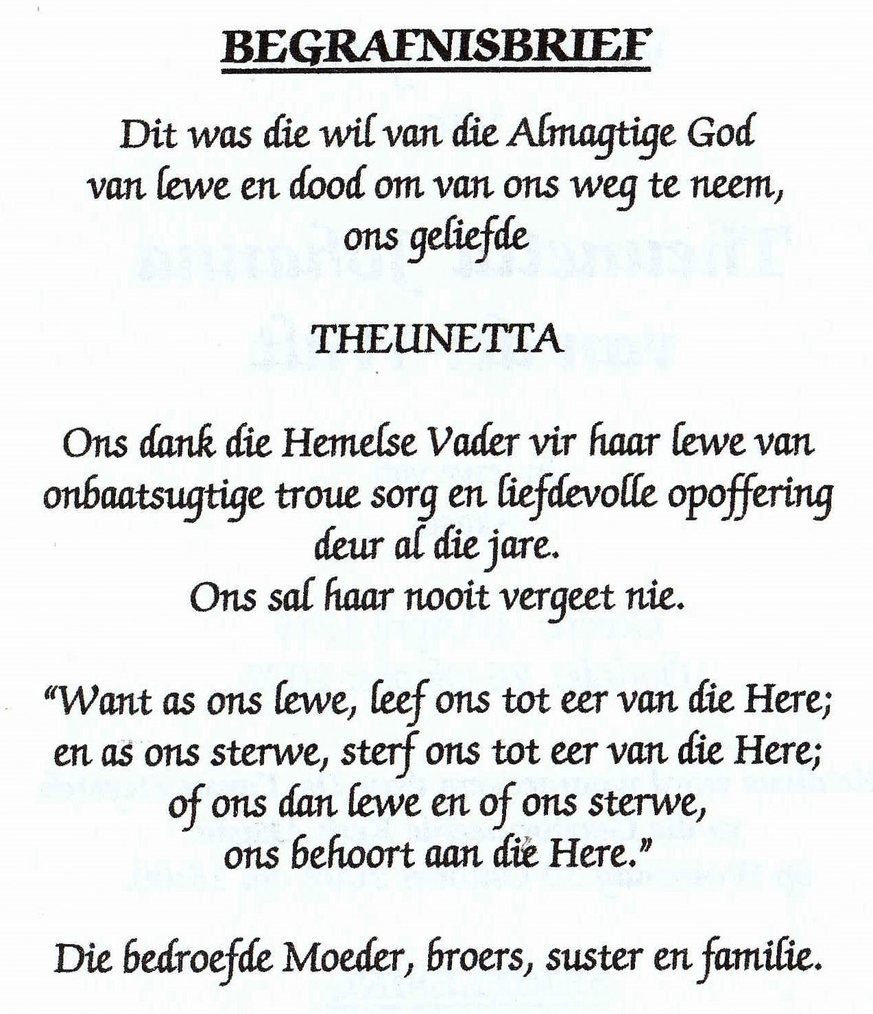 Funeral Programs / Begrafnisbriewe
