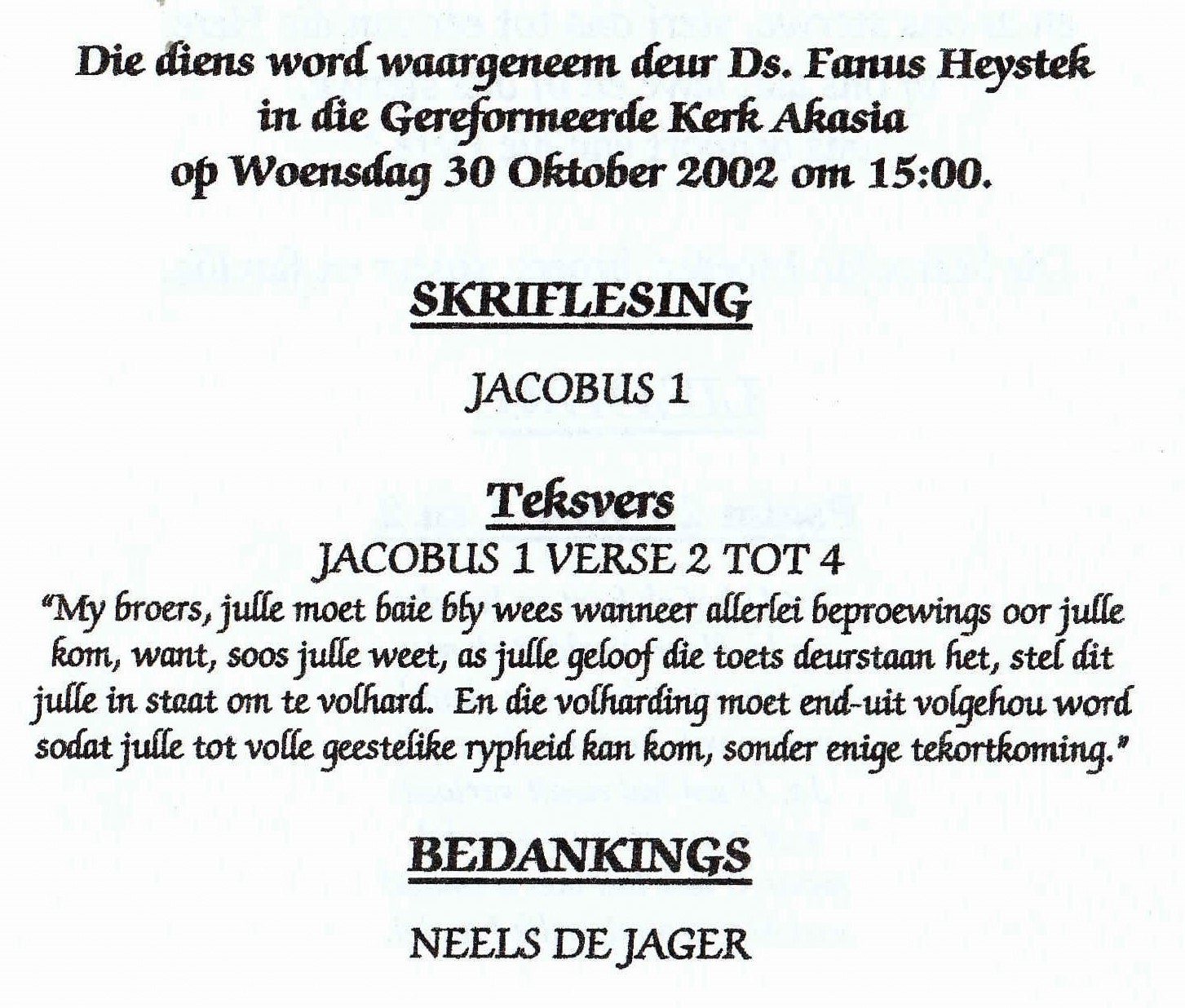 Funeral Programs / Begrafnisbriewe