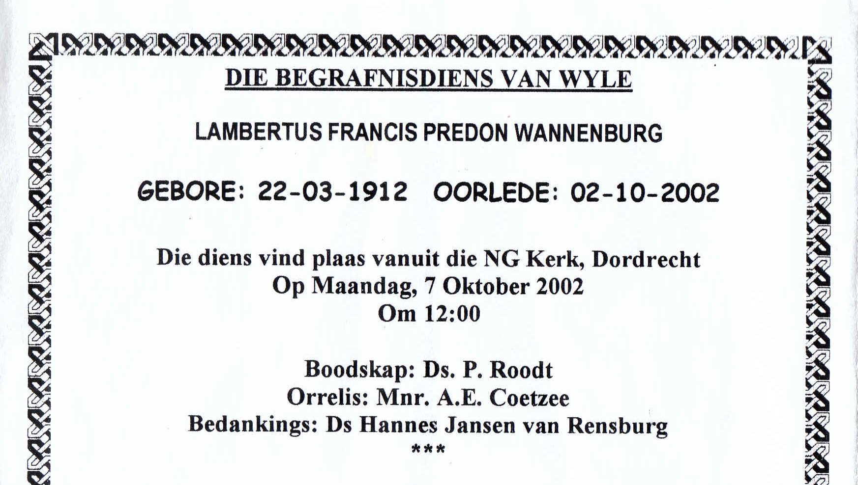 WANNENBURG-Lambertus-Francis-Predon-1912-2002-M