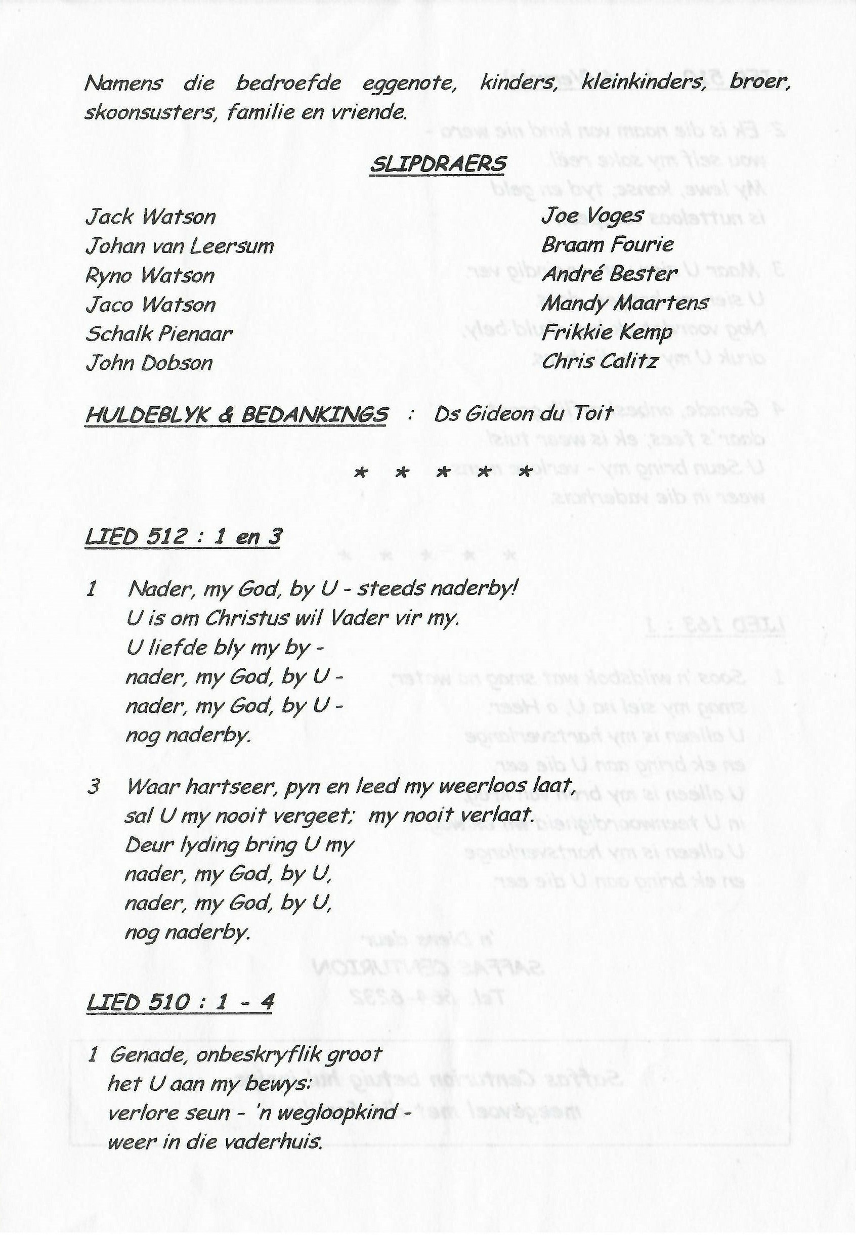 Funeral Programs / Begrafnisbriewe