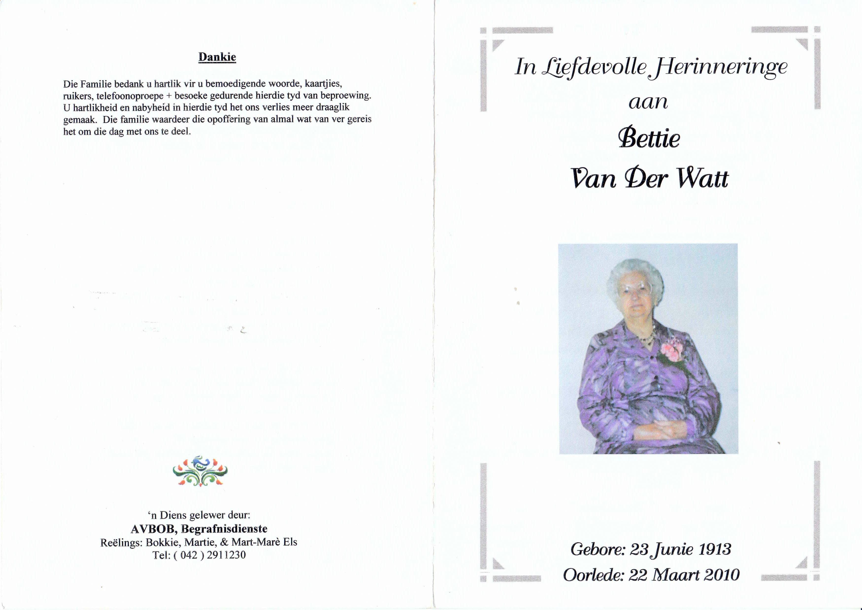 WATT-VAN-DER-Maria-Elizabeth-Nn-Bettie-nee-Stroebel-X-Ferreira-1913-2010-F