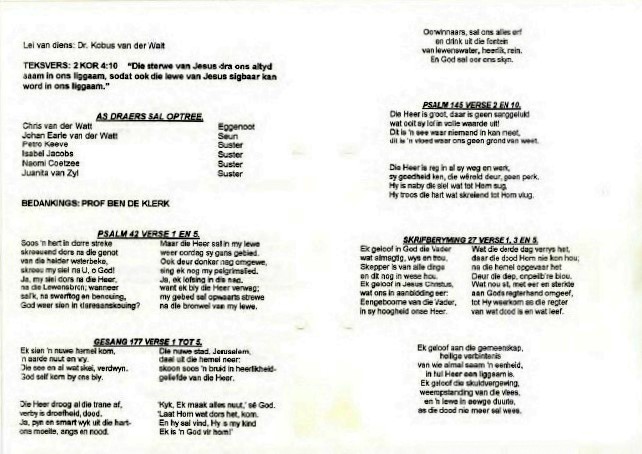 Funeral Programs / Begrafnisbriewe