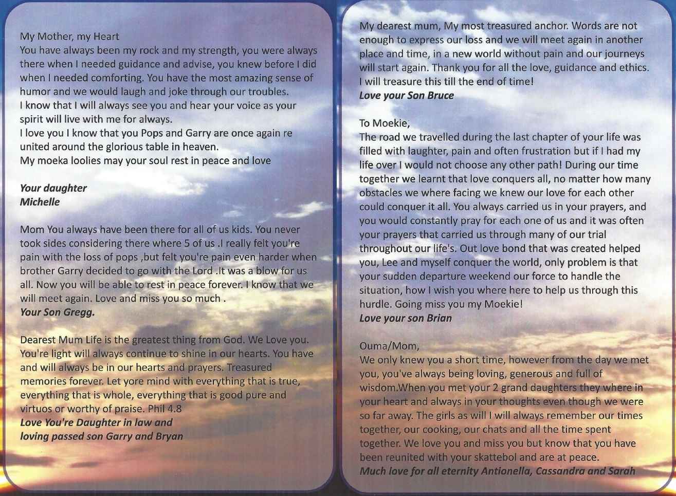 Funeral Programs / Begrafnisbriewe