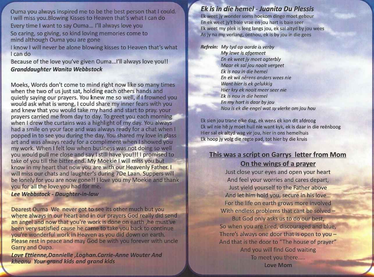 Funeral Programs / Begrafnisbriewe