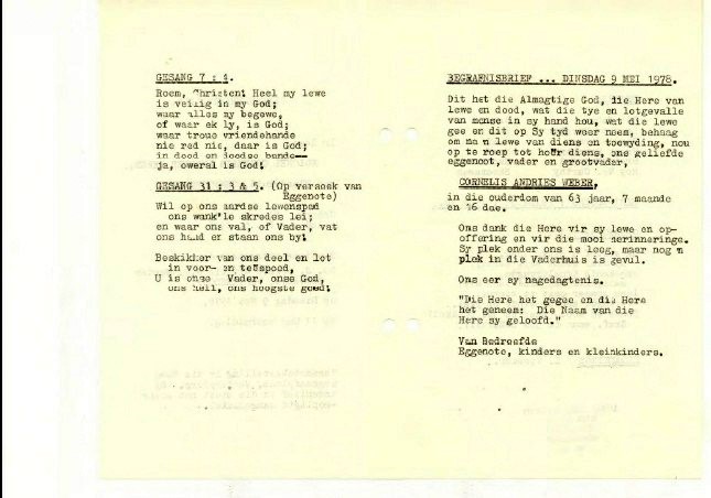 Funeral Programs / Begrafnisbriewe