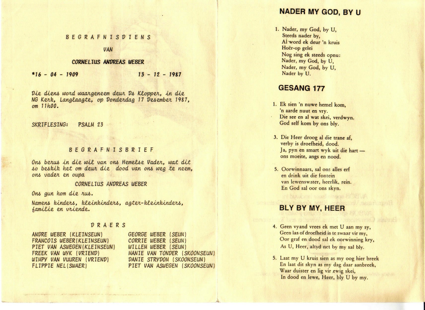 Funeral Programs / Begrafnisbriewe