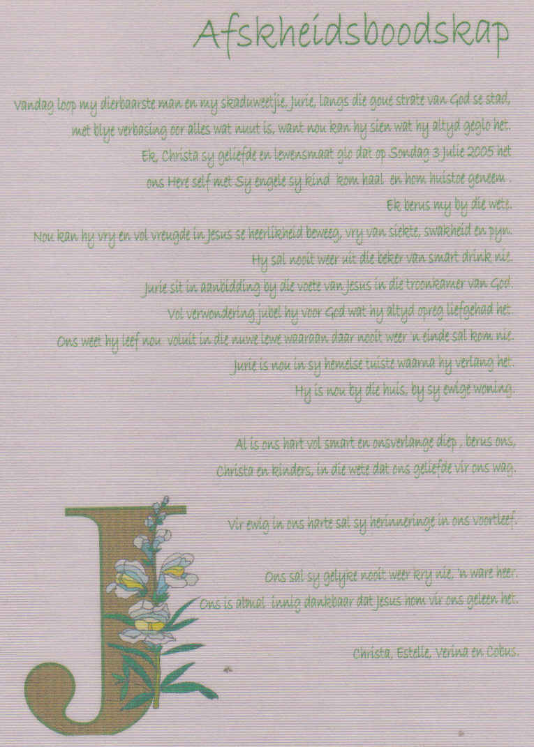 Funeral Programs / Begrafnisbriewe