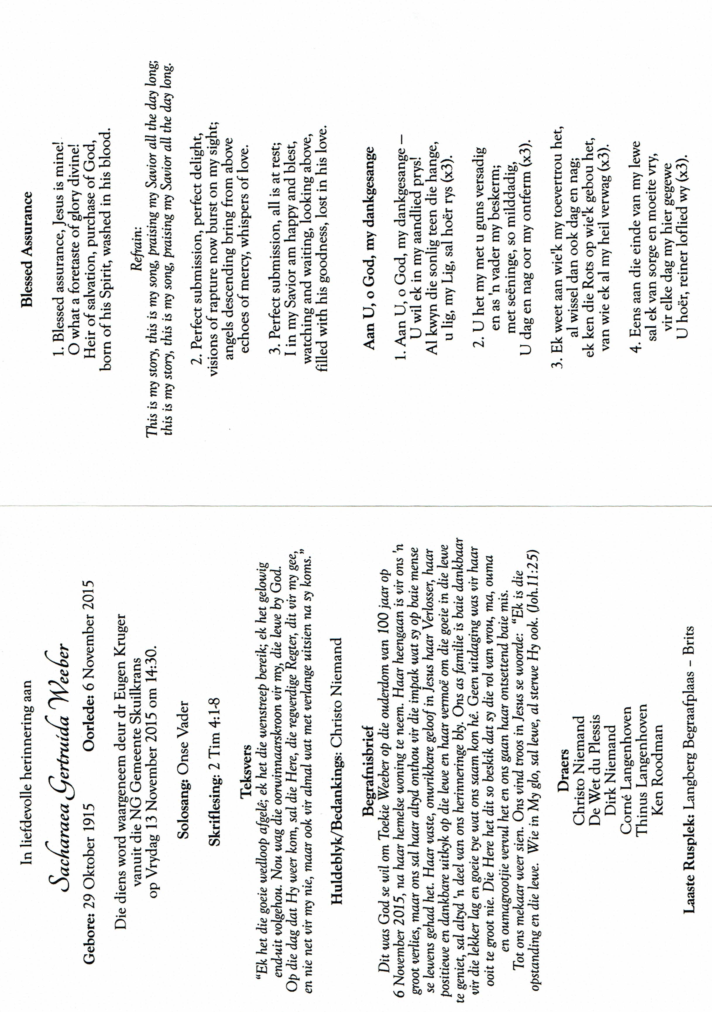 Funeral Programs / Begrafnisbriewe