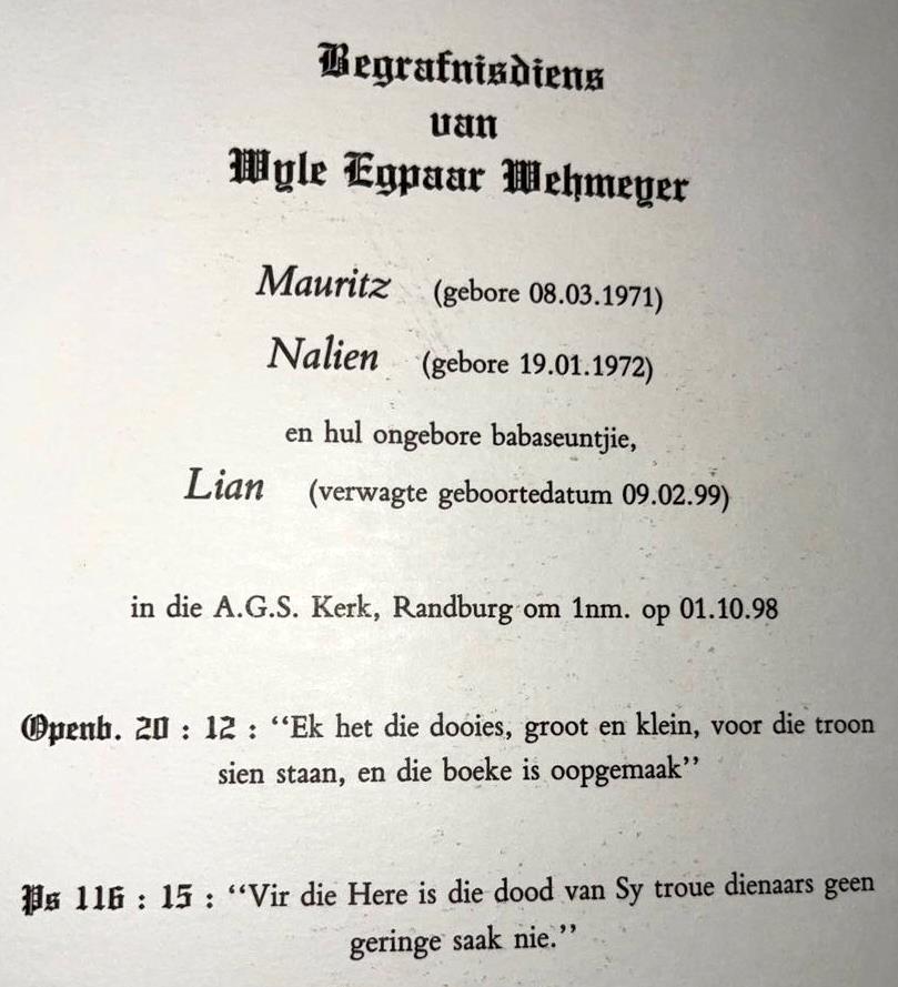 Funeral Programs / Begrafnisbriewe