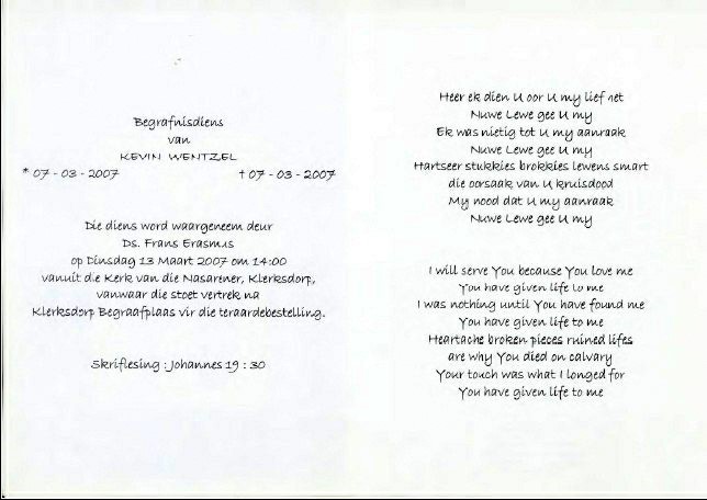 Funeral Programs / Begrafnisbriewe