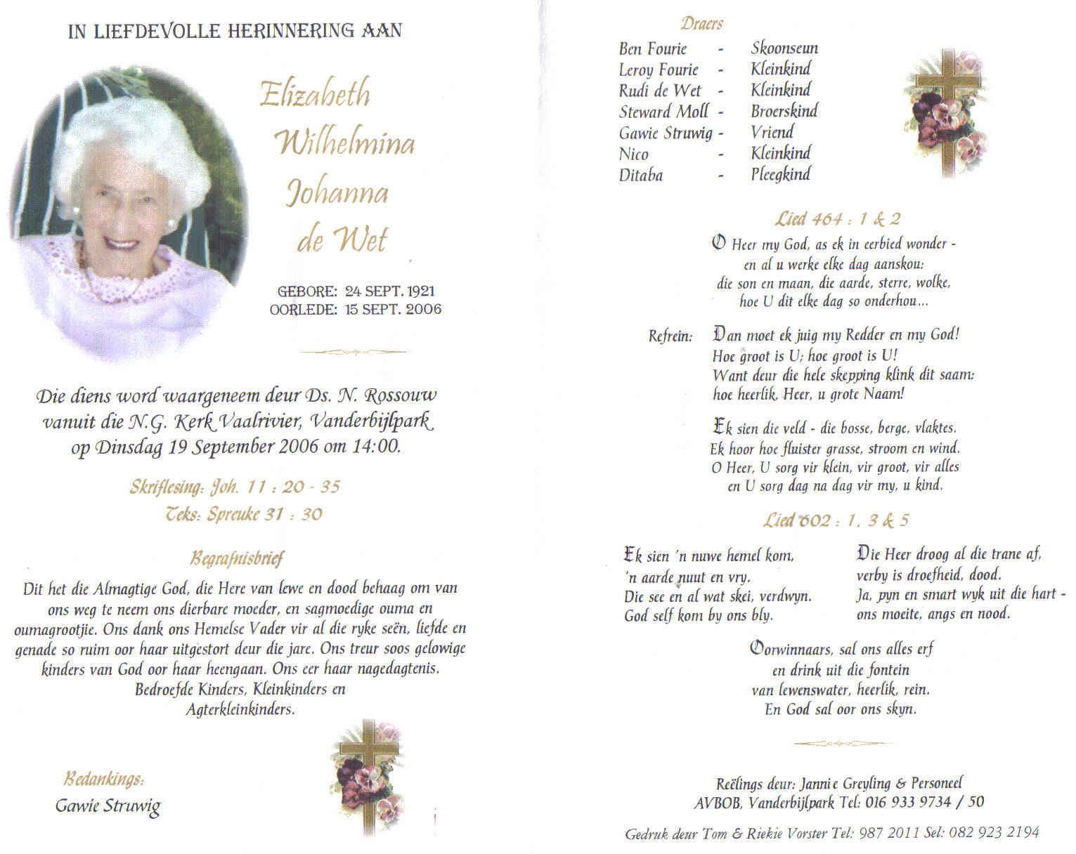 Funeral Programs / Begrafnisbriewe