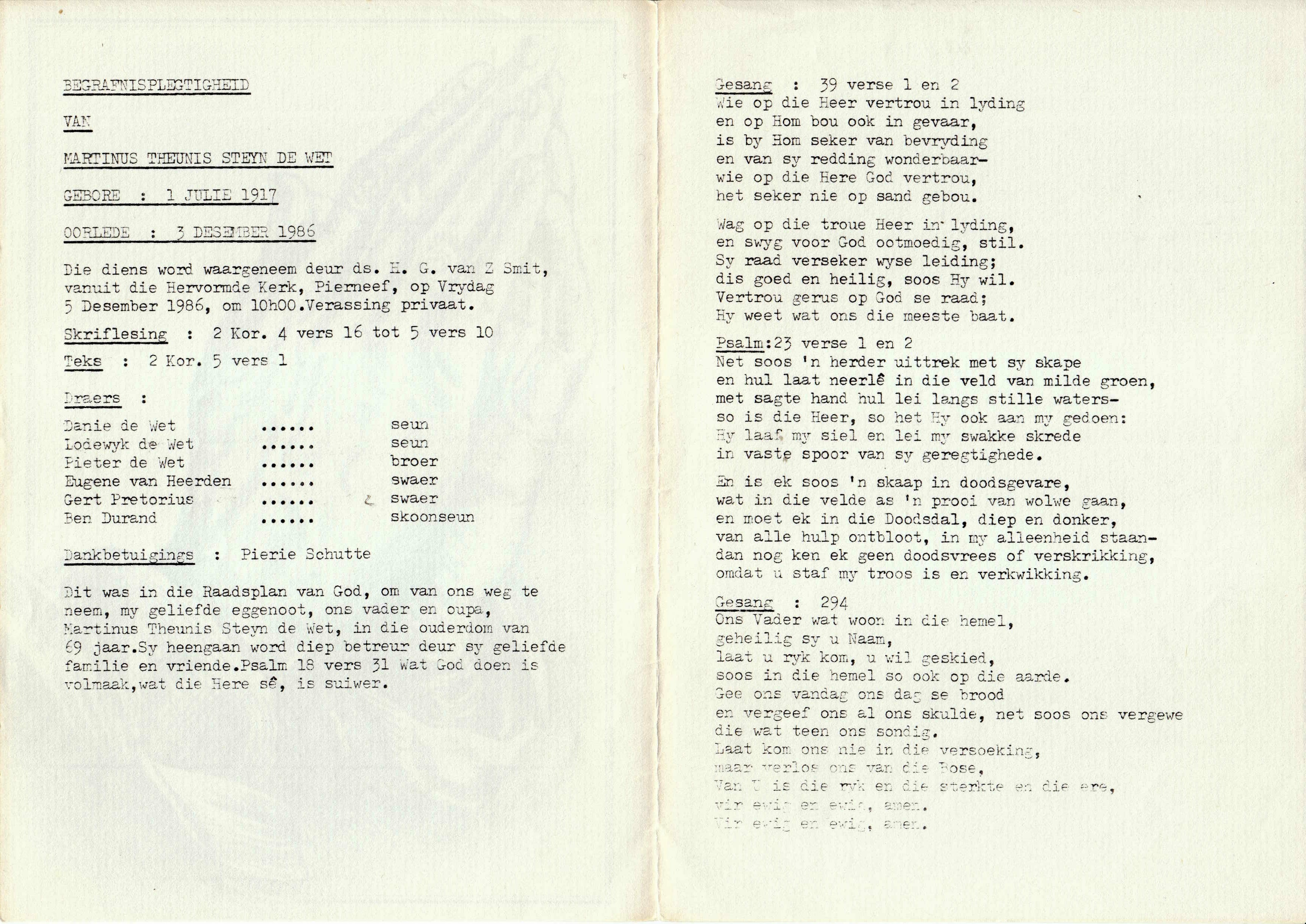 Funeral Programs / Begrafnisbriewe