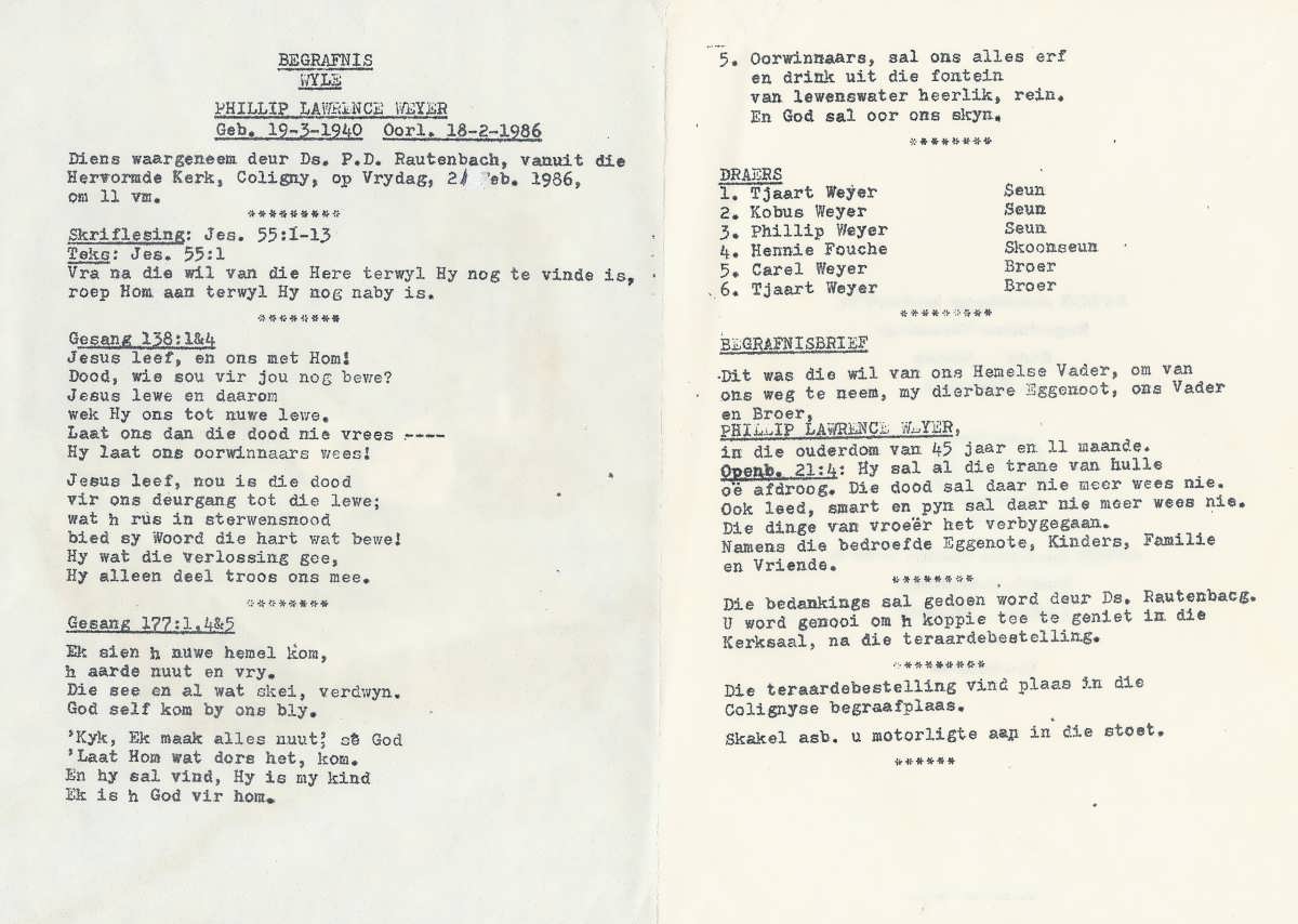 Funeral Programs / Begrafnisbriewe