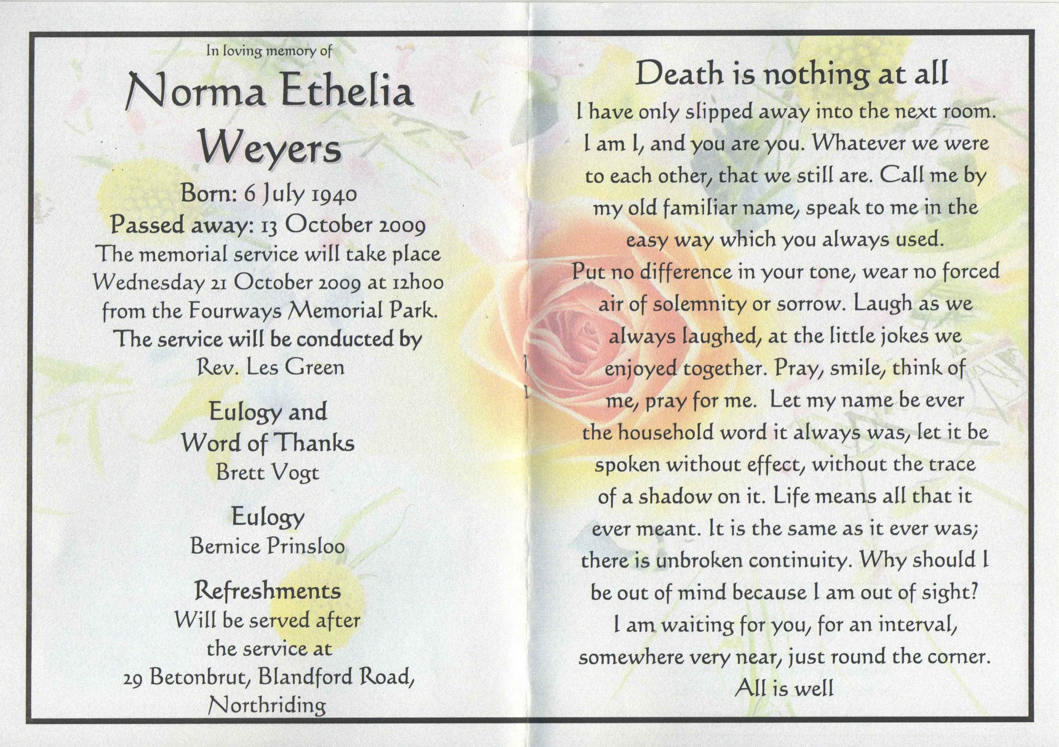 Funeral Programs / Begrafnisbriewe